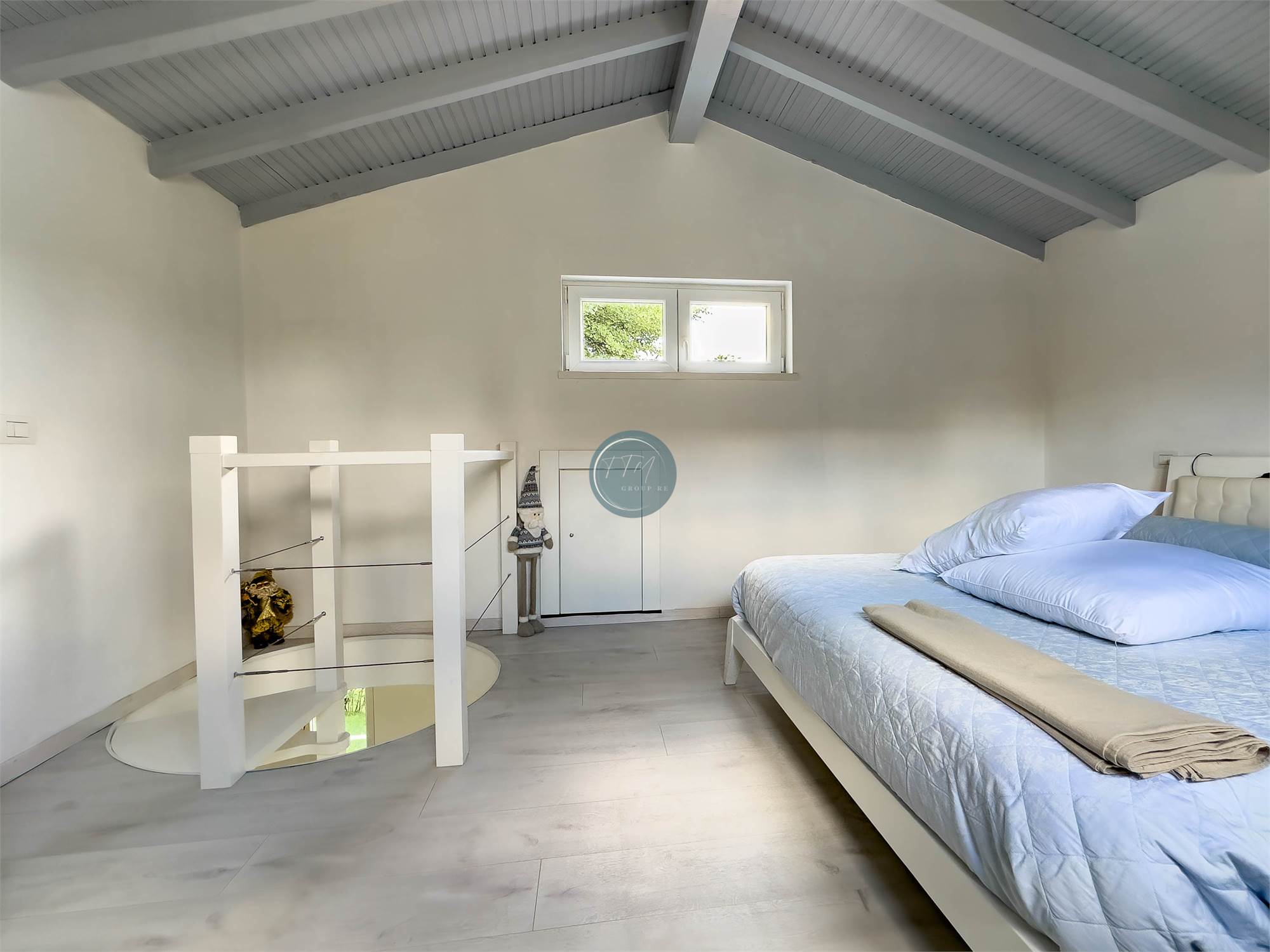 La villa si sviluppa su un piano rialzato con una zona living luminosa e una cucina a vista, ideale per momenti di convivialità. Un terrazzo attrezzato invita a pranzi e cene all'aperto, mentre le due camere matrimoniali, di cui una padronale con bagno en suite, garantiscono privacy e comfort. Un ulteriore bagno è a disposizione degli ospiti. Al primo piano sottotetto, troverai un'ulteriore camera, perfetta per gli ospiti o come studio.