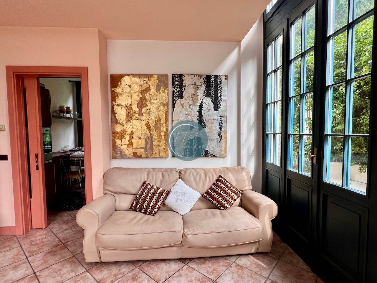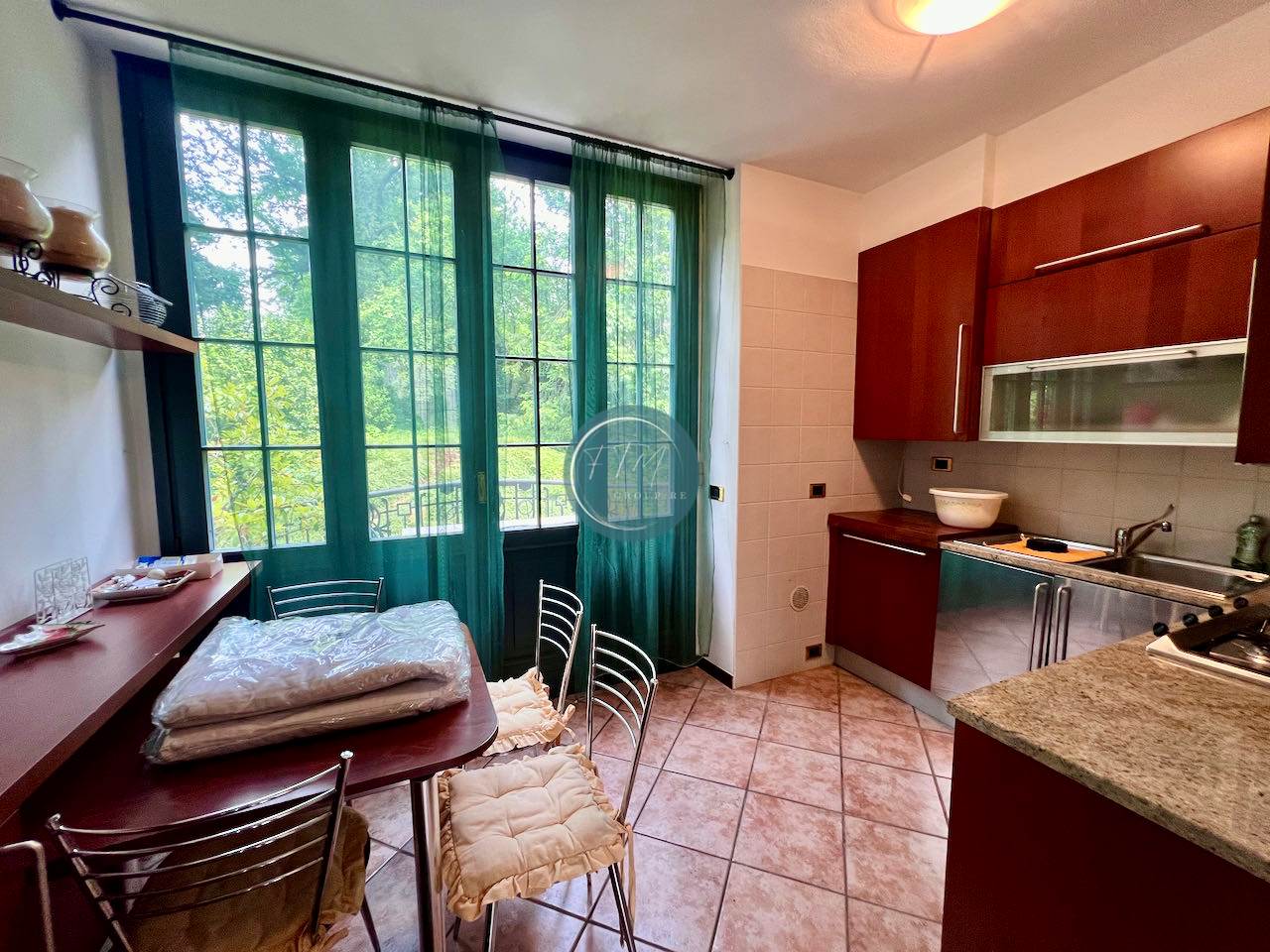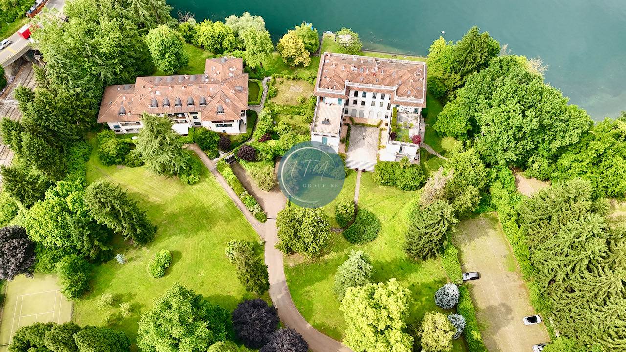 In elegante complesso residenziale pied dans l'eau, in antica Villa ottocentesca con importante parco di circa 10.000 mq con darsena privata, boe per ormeggio barche e campo da tennis, proponiamo in vendita grazioso bilocale la piano terreno con ampio patio esterno privato, composto da ingresso nel soggiorno caratterizzato da ampie vetrate, cucina abitabile, bagno, soppalco con camera matrimoniale, bagno e spazio ricavato per secondo letto. Di pertinenza un'autorimessa singola e 2 posti auto all'interno del residence.